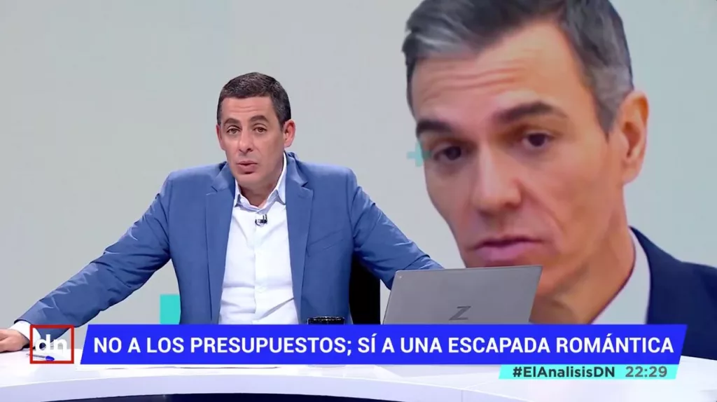 Sin cortapisas. El director de ‘El Análisis: Diario de la Noche en Telemadrid’, Antonio Naranjo, cargó con dureza contra Pedro Sánchez en su habitual editorial. El periodista no se mordió la lengua al denunciar la deriva del presidente del Gobierno, al que acusó de comportarse como si estuviera por encima de las reglas democráticas básicas. Así arrancó el presentador de Telemadrid: Miren, el presidente ha dicho que estaba muy enfadado por la situación del mundo y que no iba a perder el tiempo presentando presupuestos que serán ya, pues para toda la legislatura, los mismos que tuvimos allá por la Edad Media, más o menos. Y fíjense si estaba preocupado que minutos después de confesar que se iba a saltar la Constitución, se marchó con Begoña Gómez a los Pirineos a montar en bicicleta y hablar con los caballitos. Bueno, la verdad es que ya se le agotan las excusas para incumplir la primera obligación de un presidente digno de serlo, llevar las cuentas del Estado al Congreso y si no consigue aprobarlas, pues convocar elecciones. Solo le falta por decir, así como pretexto, que hombre, hay que guardar luto por la muerte del gran Chuck Norris y que con esa pena que el hombre lleva encima, nadie tiene derecho a pedirle que cumpla con la ley. Alucinó con los hechos acaecidos durante la última semana: En fin, España no se debe acostumbrar a vivir en una situación, de emergencia democrática. Que pongan la cara de Sánchez en misiles de Irán, que salgan sanguinarios etarras de la cárcel para que Otegi siga apoyándole, que un juez dé veracidad al sobre de Aldama y otro quiera sentar a Begoña Gómez delante de un jurado, o que podamos escuchar a dos fontaneros del PSOE hablando abiertamente de cómo montar campañas para acabar…