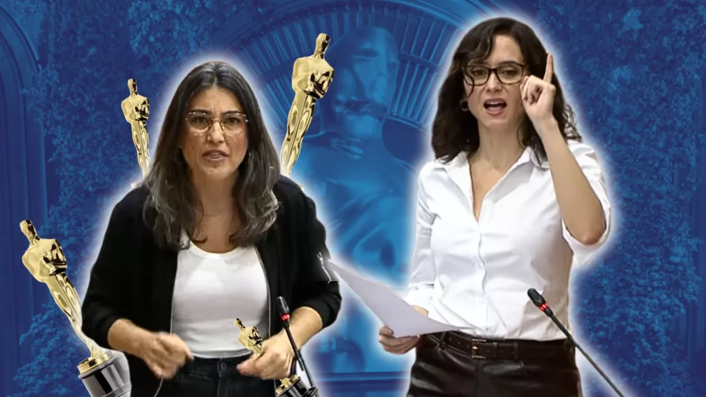 La presidenta de Madrid, Isabel Díaz Ayuso, ha dejado a la altura del betún a la portavoz de Más Madrid, Manuela Bergerot, en la sesión de este jueves, 19 de marzo, en la Asamblea. Tras una performance exagerada de la diputada de extrema izquierda, la popular le otorgó el Óscar tanto a ella como a su bancada y al resto de partidos del espectro a la izquierda del PSOE. «Efectivamente, el Óscar es para Podemos, Sumar y “HamásMadrid”. El Óscar. Los mejores actores. Toda la vida diciendo “la izquierda auténtica”, “la de las gentes de las calles”, “nosotros somos los del pueblo”, pues por una pajarita, por un esmoquin, por el maquillaje, por unas tenacillas, una casa de 443 metros cuadrados en Chamberí y viajes a tutiplén les ha comprado Pedro Sánchez. El poder del caviar les ha vencido, señorías». Díaz Ayuso ha recordado, además del comentado viaje de la ministra de Trabajo, Yolanda Díaz, a la gala del Premio de la Academia de Artes y Ciencias Cinematográficas, los polémicos desplazamientos de la líder de Sumar, de Irene Montero y de otras dirigentes de izquierdas a Estados Unidos, al Vaticano, al Festival de Cine de Cannes o a Punta del Este (Uruguay). En este sentido, ha destacado la hipocresía entre lo que dice y hace la izquierda y, en especial, la extrema izquierda, que no pierde oportunidad de intentar convertirse en lo que critica. «Todo por el pueblo, pero si no les hemos visto en Senegal con los pobres o en los pueblos de Bolivia, cuya pobreza ustedes multiplican allí para luego también tenerles aquí sumidos en la misma; o en ninguna comunidad necesitada en Asia». También ha reflexionado sobre cómo Pedro Sánchez ha fagocitado a la extrema izquierda al comprarla con cargos. «Sánchez les vio venir desde el primer…