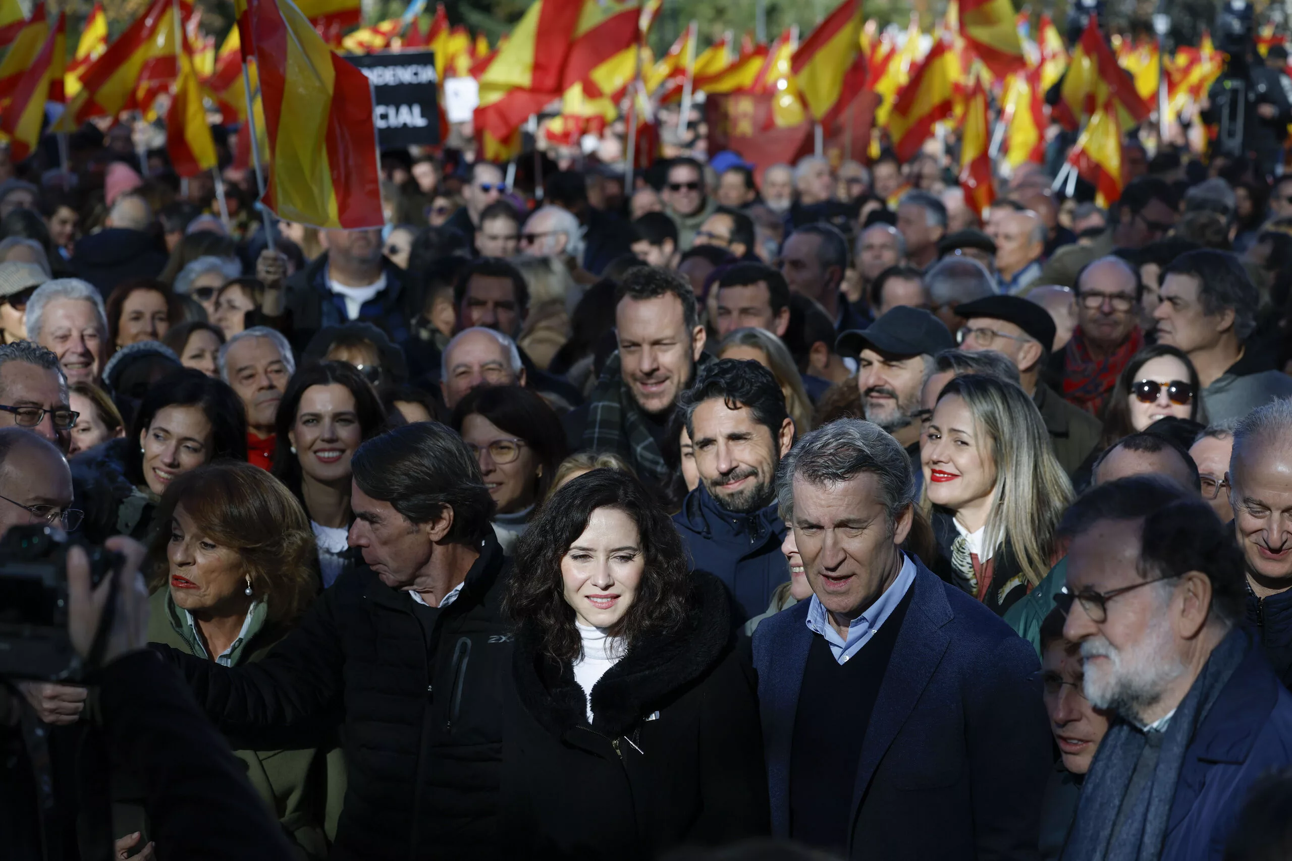 El PP exhibe fuerza en la calle: Feijóo exige elecciones bajo la sombra de la corrupción y al ritmo de ‘The Final Countdown’.