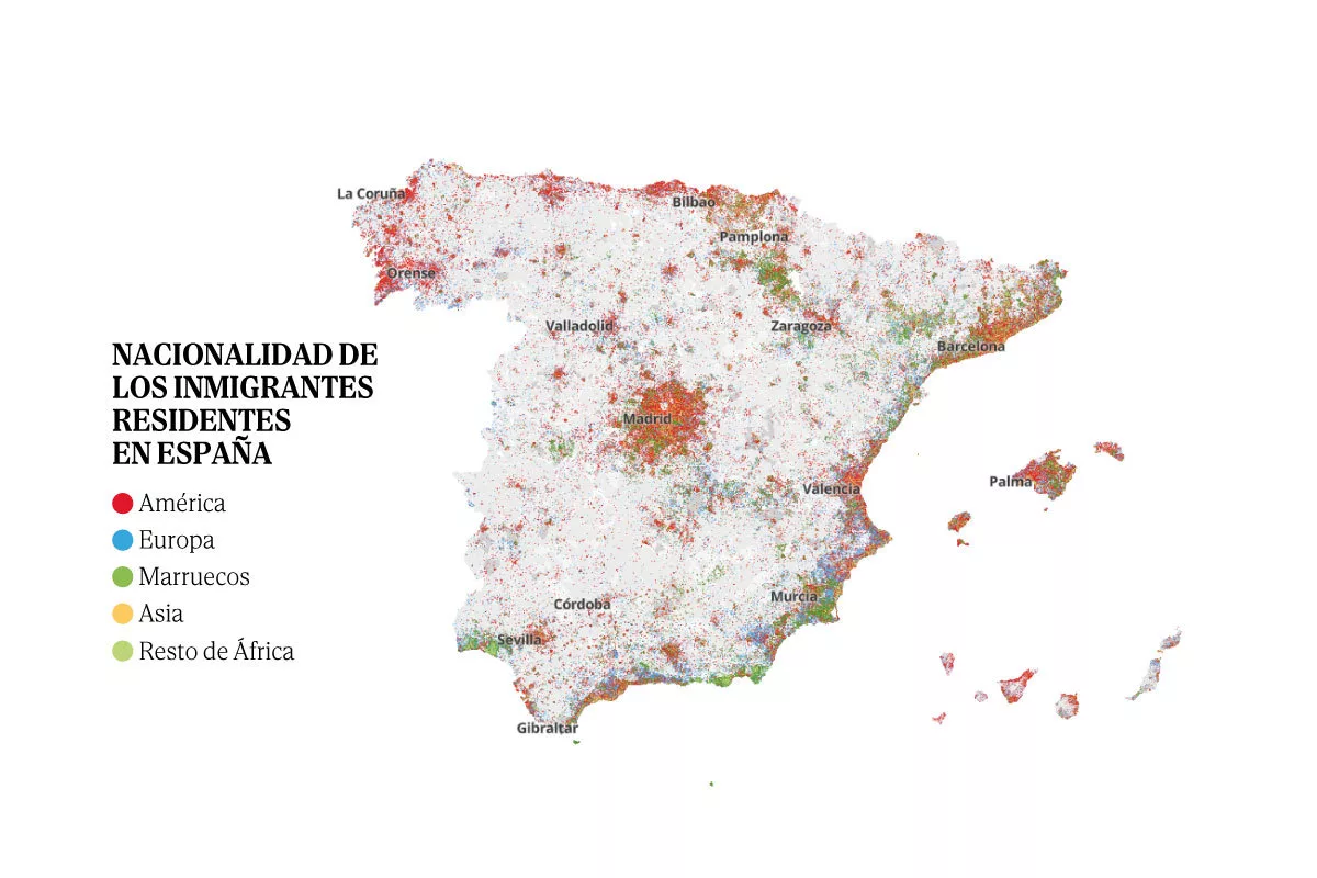 El mapa de la inmigración en España: América gana terreno, Marruecos lidera como país y destino a los barrios de renta baja