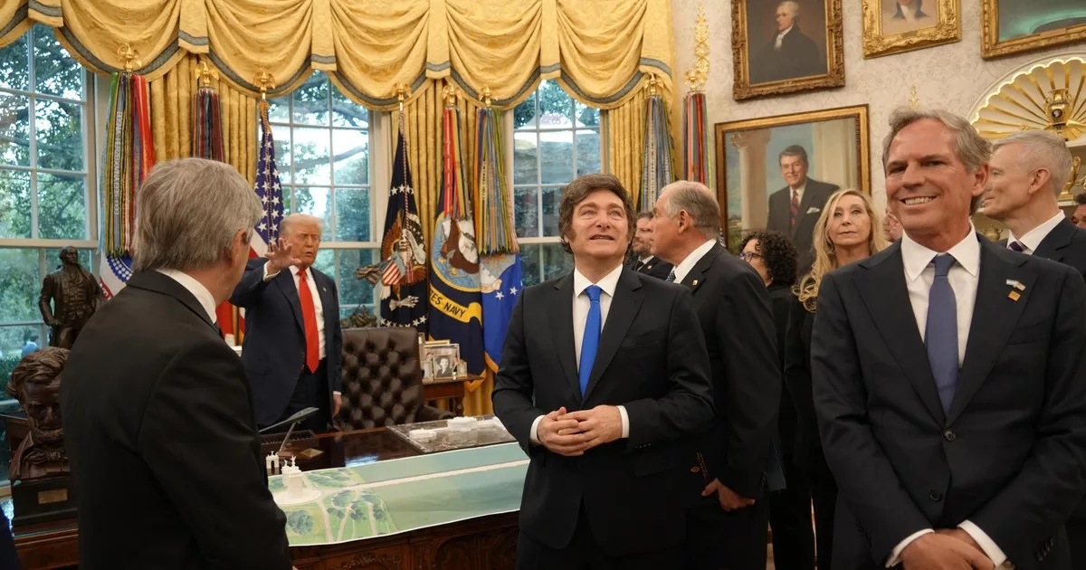 Estas leyendo:La maqueta de la Casa Blanca, las miniaturas de aviones y el asombro de los funcionarios: las fotos de la visita guiada que le dio Trump a Milei por el Salón Oval