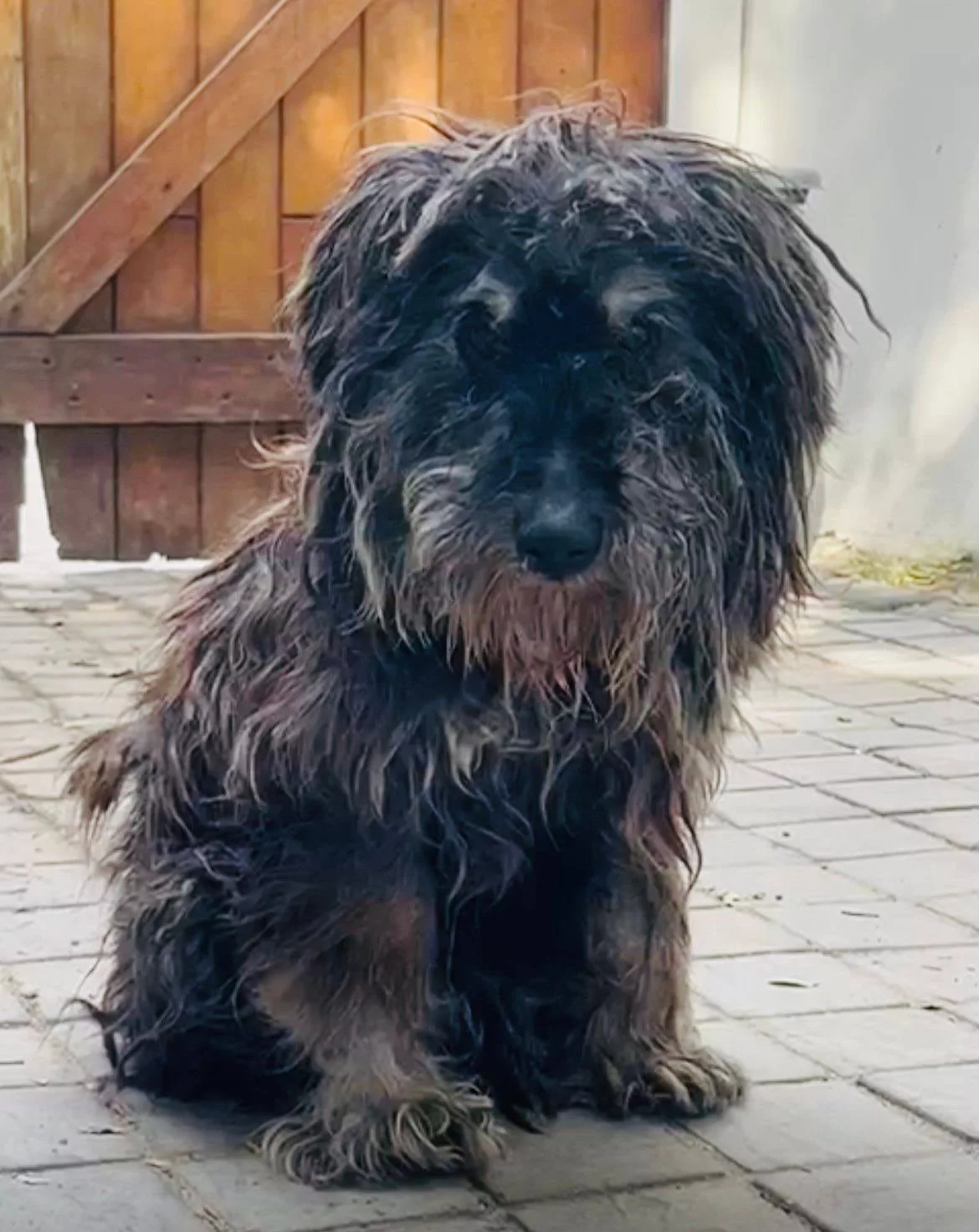 Antes de ser trasladado, el perro de 15 años se sometió a un examen veterinario exhaustivo. Durante el control clínico, se descubrió que estaba completamente ciego por cataratas, que tenía los dientes muy descuidados, que estaba extremadamente ansioso y que tenía el pelaje muy enmarañado. Parecía un náufrago: olvidado, asustado y frágil.