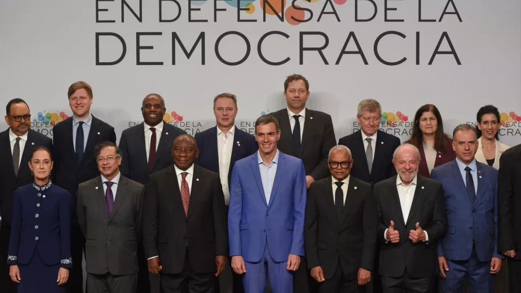 La cuarta Reunión para la Defensa de la Democracia, impulsada por España y Brasil, congrega a más de una veintena de mandatarios europeos, americanos y africanos comprometidos con un orden mundial basado en la paz y el multilateralismo. Por Argentina, participó Axel Kicillof.