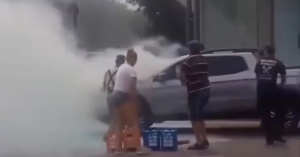 Pergamino: se prendió fuego una camioneta y dos soderos la apagaron a sifonazos