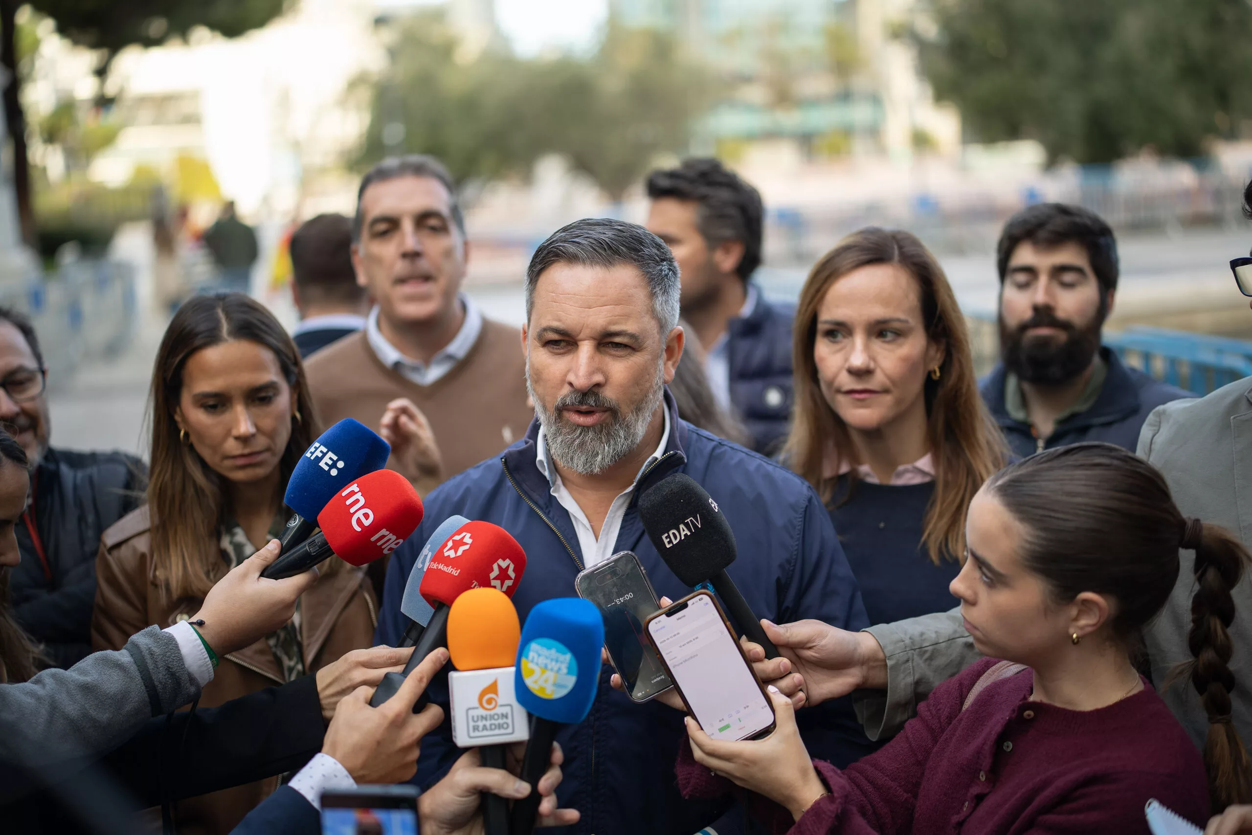 El líder de Vox renunció a acudir tanto a la tribuna de autoridades como a la recepción en Palacio Real por la situación del Gobierno central