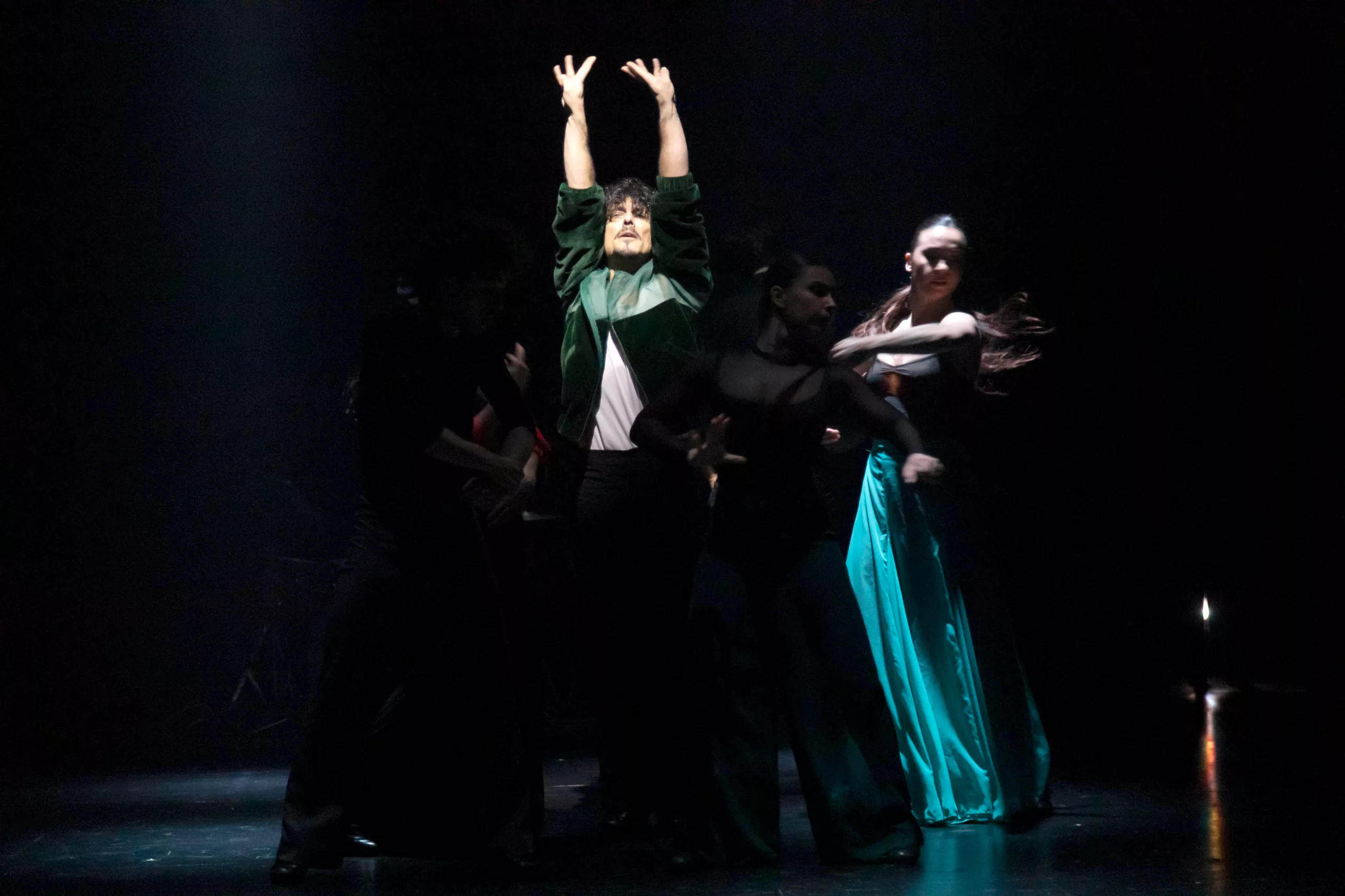 Tras su accidentado paso por el Ballet Español de la Comunidad de Madrid, del que fue su primer director, un puesto donde apenas estuvo una temporada y estrenó un fallido primer espectáculo, Jesús Carmona (Barcelona, 1985) vuelve a escena con su formación privada y un espectáculo que explosiona por su ambición y producción, aspirando al gran formato y a deslumbrar al público con un escenario tenebrista, profuso de elementos y alimentado por un sonido mixto en el que abundan las confusiones tímbricas, aunque después se redime, en parte, en el acompañamiento de los bailarines y en la síntesis de gusto contemporáneo de ritmos vernáculos.