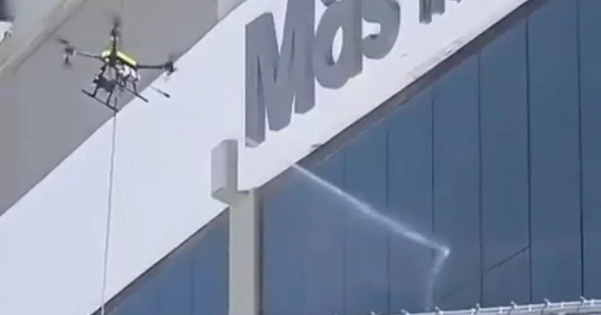 En medio de las obras que se están llevando a cabo, entre los socios llamó la atención la manera con la que se limpian los vidrios ubicados a grandes alturas en la cancha.
