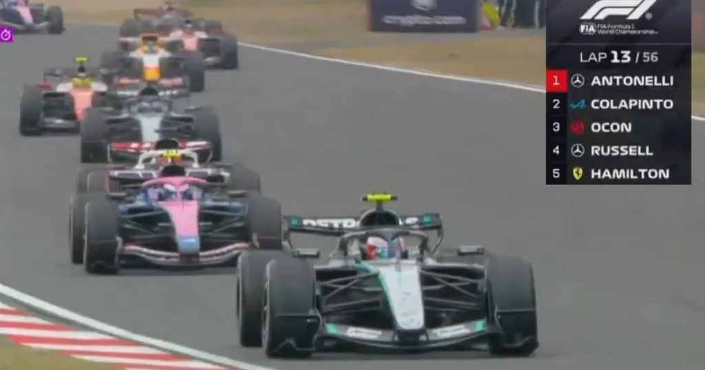 Por haberse mantenido en pista en el safety car, Franco se posicionó 2° durante un tramo del GP de China. El último argentino en haber girado en esa posición fue Carlos Reutemann, hace 44 años.